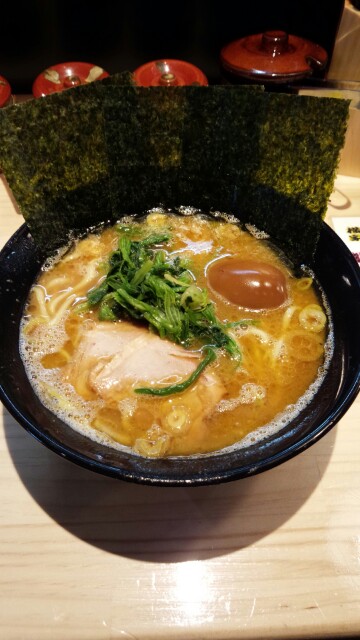 201412/30 拉麺納め 拉麺 0 駅裏の横浜家系ラーメン、横横家。トッピングとテーブルに置いてある薬味で様々な味が楽しめ、自分好みの一杯を的なノリです。スープの濃さとか麺の硬さ等も選べます。とりあえず、全部ふつうにしてみたけど、ちょっと濃いかな。店内が広くて綺麗で、店員が恥ずかしいくらい元気だったのが印象的です。 [2回]