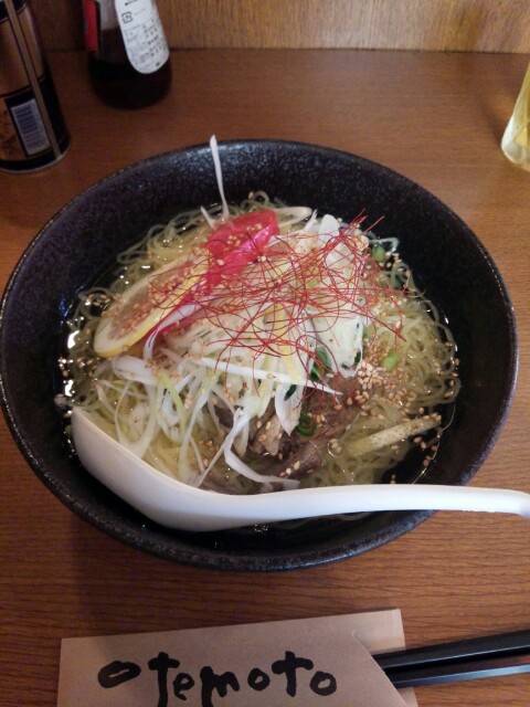 201408/03 文化横丁 拉麺 0 文横の呑み屋のランチ限定テールスープラーメン。温かいのと冷たいのを選べたので冷たいので。うん、テールスープ。なんとも不思議。最後はご飯を投入して雑炊みたいにして〆。結構ボリューミーでした。 [0回]