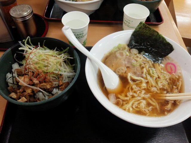 201405/27 さの 拉麺 0 先日の遠征帰り、いつも寄る羽生PAが事故で入れないとのこと。羽生はコンビニがあるのでリーズナブルな夜食をとれるのです。でも今回は仕方ないので佐野で贅沢夜食。佐野ラーメンとネギ飯。こういうとこのわりには悪くないラーメンで、意外とボリューミー。というか、ネギ飯も美味かった。夜中に満腹。 [1回]