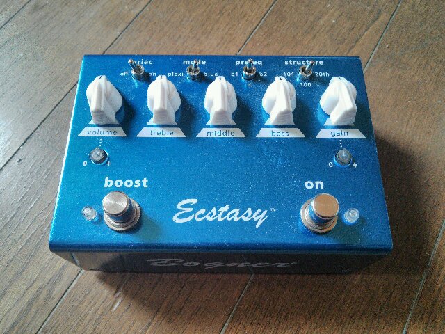 好きなギタリストが使ってるFryetteのBoostassioが気になってたんですが、電池駆動できないのもあって結局中古でBogner Ecstasy blueを購入。
