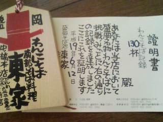 思ったより食べれましたね。100を超えると手形が貰えます。