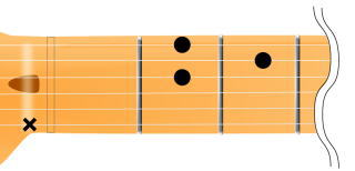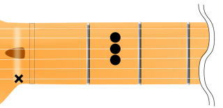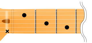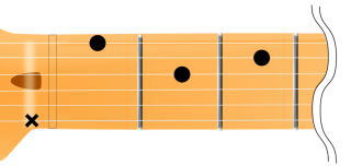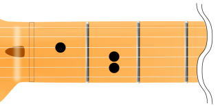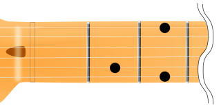 2弦1F(フレット)を人差し指、4弦2Fを中指、5弦3Fを薬指といった具合で押さえます。