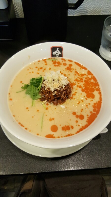 201605/24 侮ってたん 拉麺 0 駅裏の餃子と坦々麺・吟。なかなかお洒落な内装で意識高い系(笑)なラーメン屋。とりあえずイチオシらしい白胡麻坦々麺。今まで坦々麺てあんまり好んで食べなかったんですけど、ここの坦々麺ヤバいです。坦々麺を見る目が変わりました。それだけでも美味しいだろう挽肉が溶け込んだスープが絶品でした。ここはまた必ず行きます。 [2回]