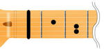 例えばFは、そのフォームのままフレットを二つ分上がれば、あら不思議。なんとGのコードになるのである。