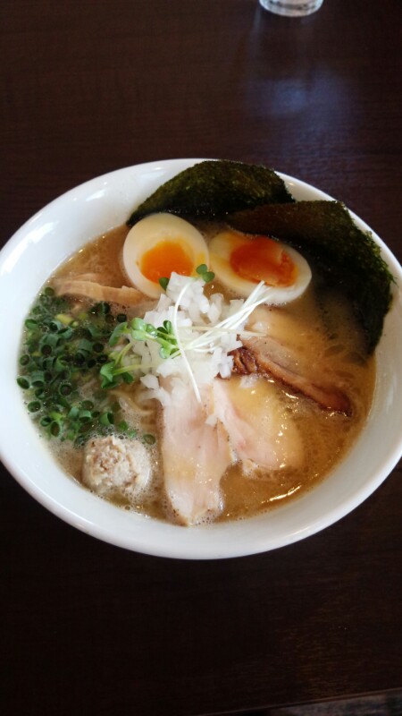 201505/30 鶏白湯 拉麺 0 せっかく空けたのに仕事がなくなってしまったので、同僚と麺屋くまがいに行ってきました。開店前からから並んでましたが、開店と同時に中には入れました。特製濃厚鶏そば。ドロッとした白湯スープに相性抜群の歯応えある細麺。トッピングは味玉やメンマ、鶏チャーシュー、鶏だんごなど。特にトッピングとしては珍しい鶏だんごの食感と口の中で広がる旨味が最高でした。テーブルには黒こしょう、酢、生姜がおいてあり味を変えて楽しめそう。全体的にボリューミーで満腹満足でした。次は醤油にもチャレンジしたいです。 [2回]